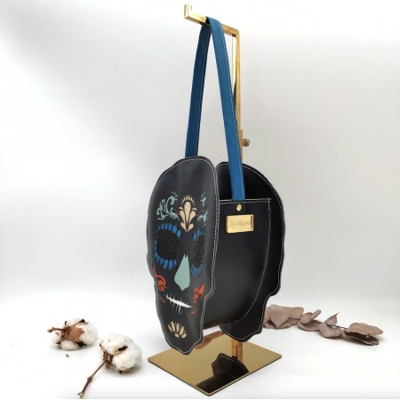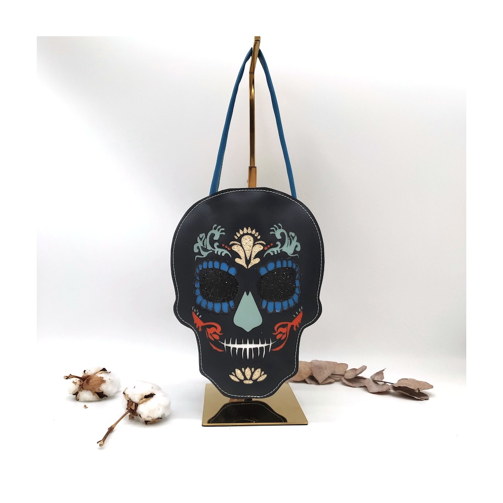 Sac à bonbon tête de mort, en cuir végane pour Halloween