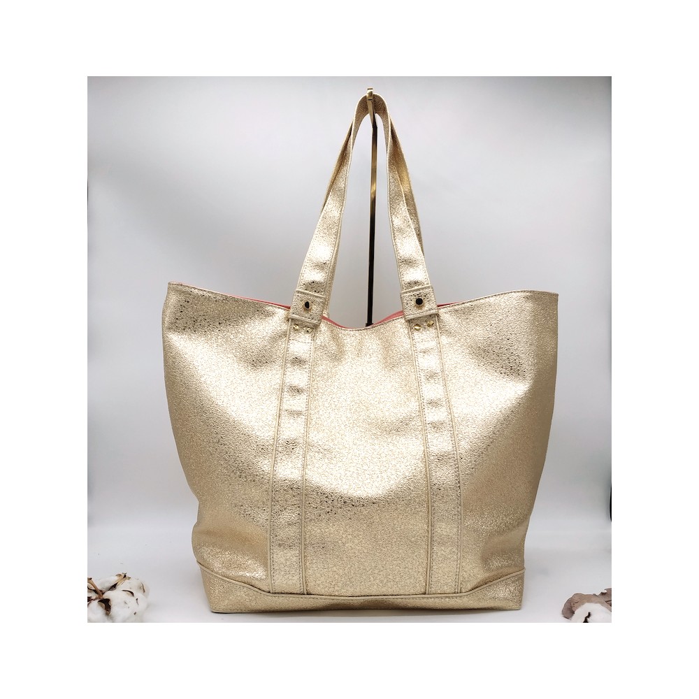 Le sac Cabas format XXL « Saint Tropez » , rose et doré à personnaliser en cuir végane avec les anses courtes