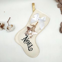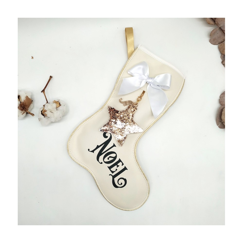 Botte de noël 2 en 1, doré, écru et vert émeraude en cuir végane
