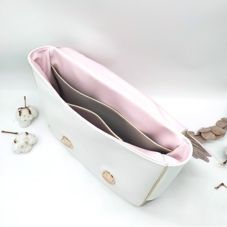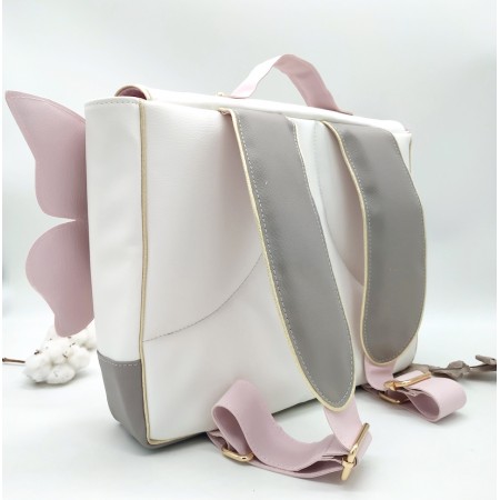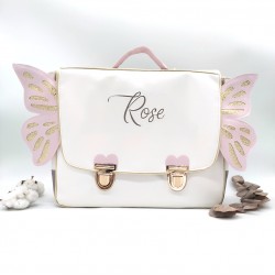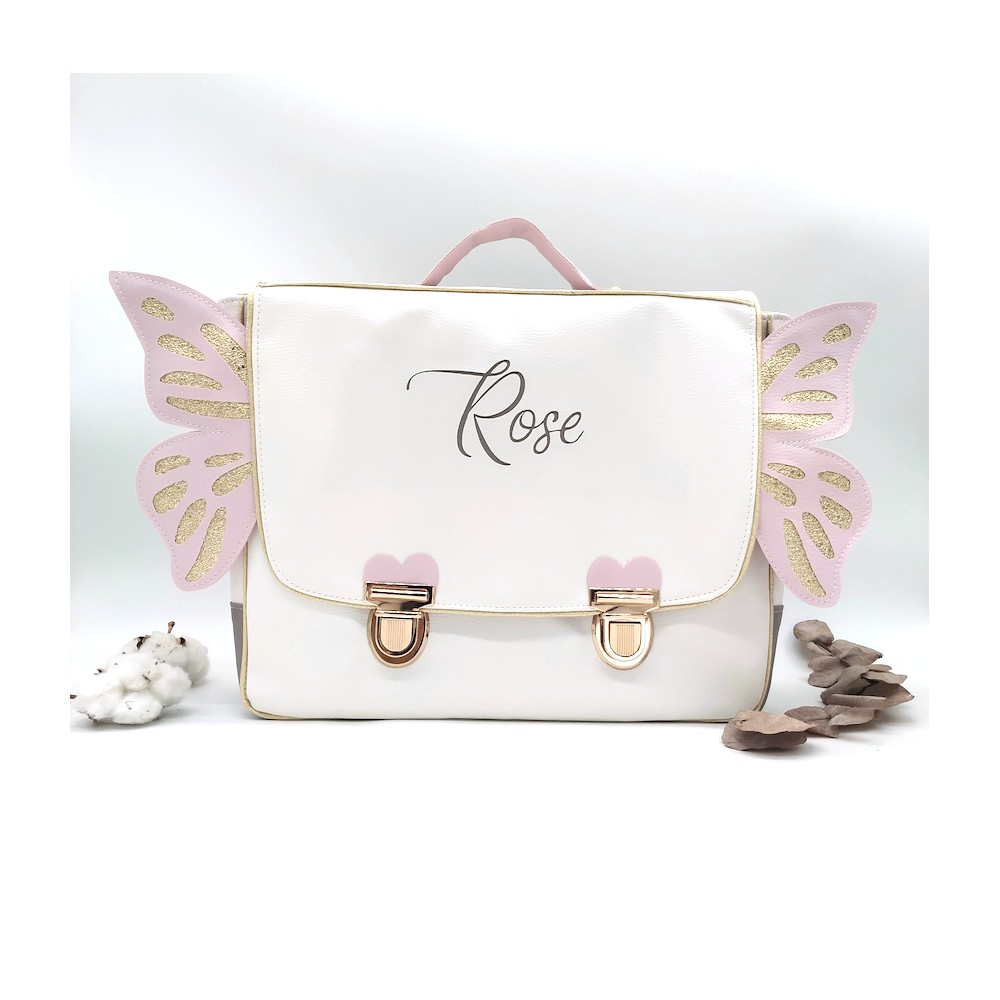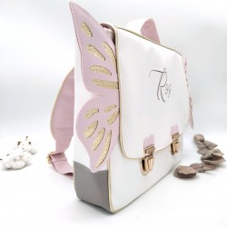Cartable format primaire papillon, rose et gris, en cuir végane