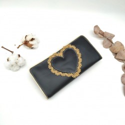 Portefeuille Ex voto noir en cuir végane personnalisé