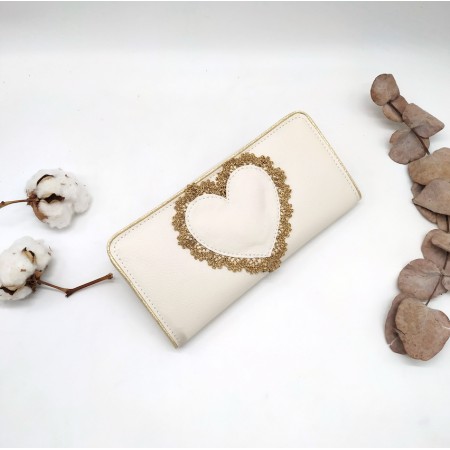 Portefeuille Ex voto écru en cuir végane personnalisé