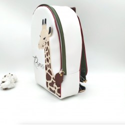 Sac à dos Girafe format maternelle, kaki, marron, terracotta et beige, en cuir végan, maternelle ou primaire