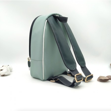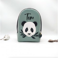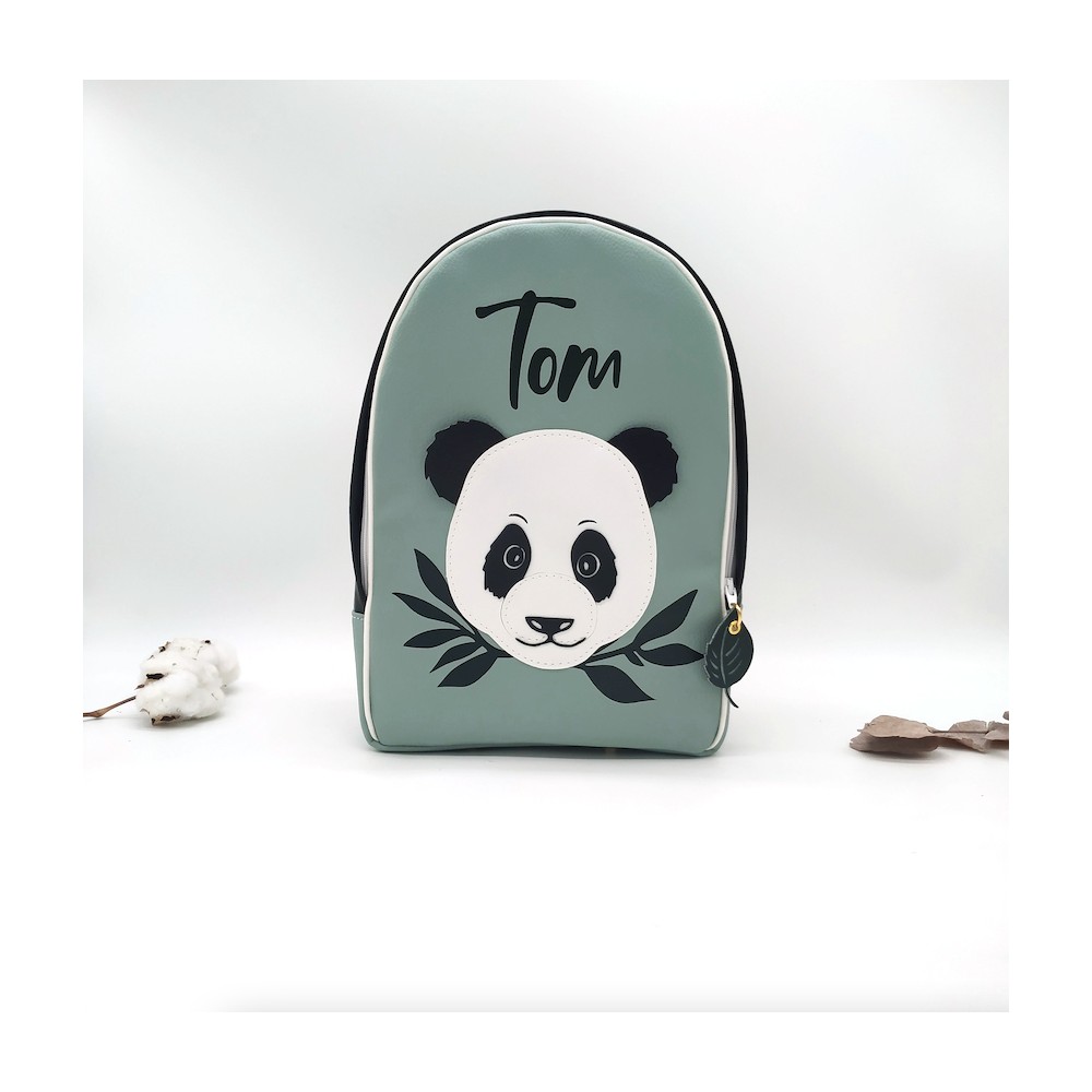 Sac à dos Panda format maternelle , vert amande, noir, blanc et vert, en cuir végan, maternelle ou primaire