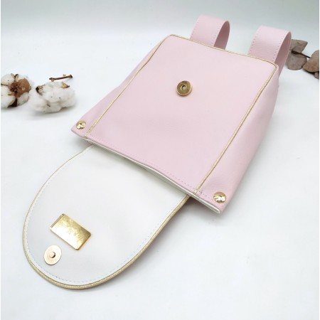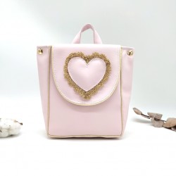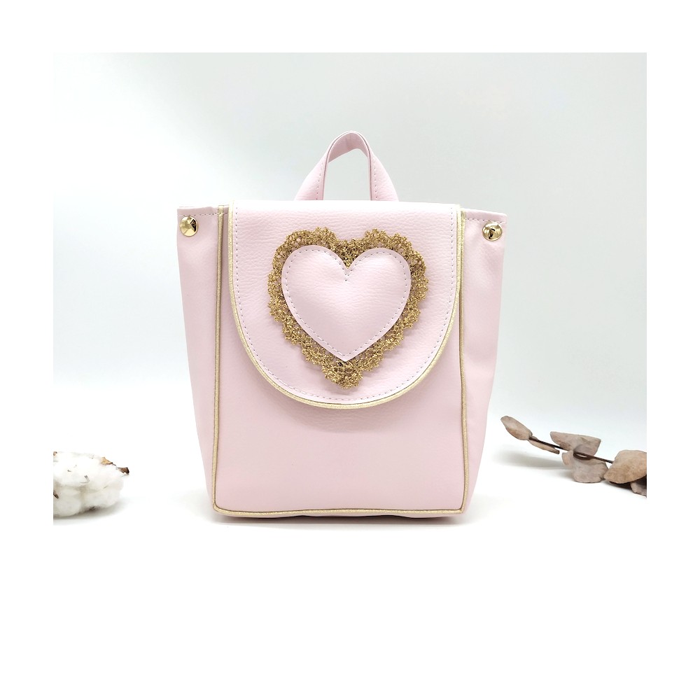 Mini sac à dos coeur format crèche, blanc et rose, en cuir végan, maternelle ou primaire