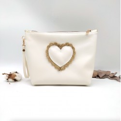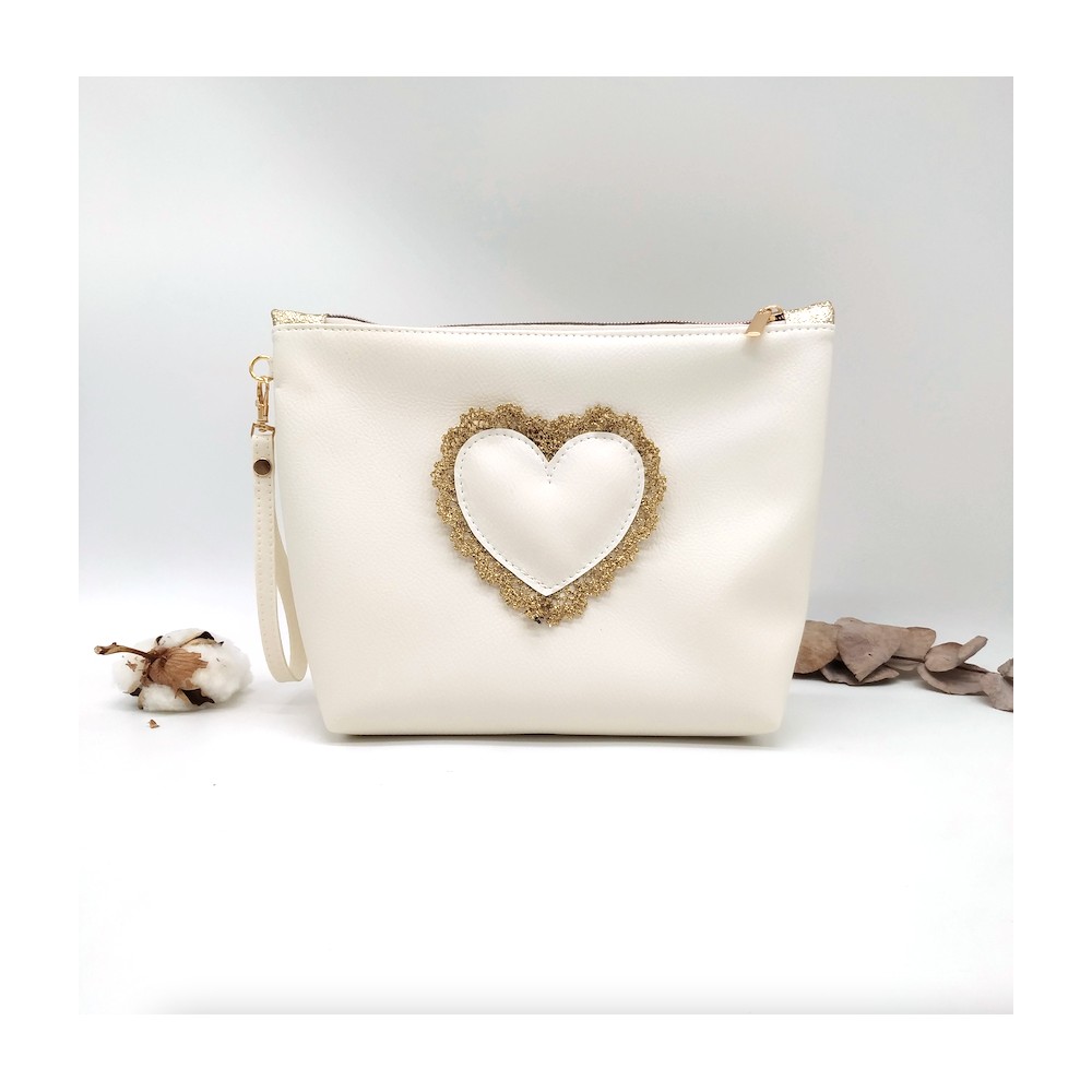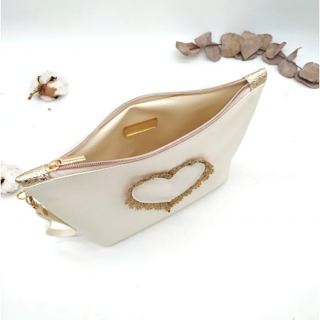 Trousse de toilette coeur ex voto écru, en cuir végane